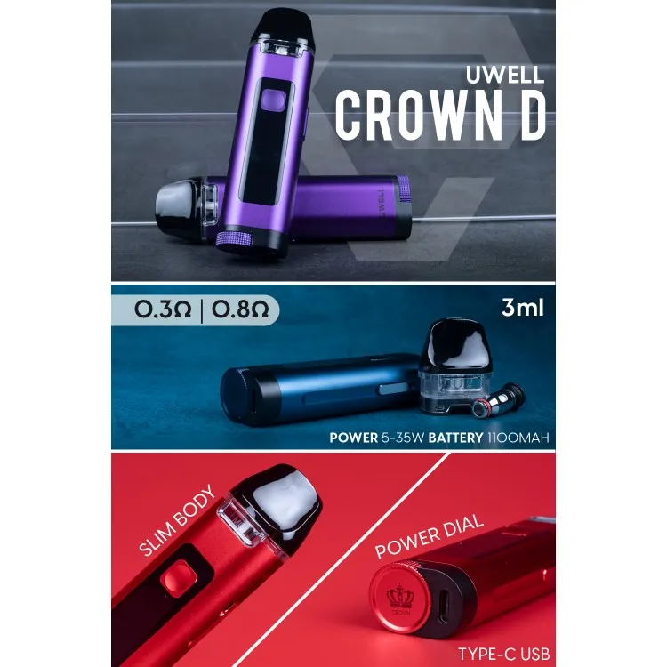 The Caliburn Crown D stands at the top of Uwell’s pod system lineup — engineered for vapers who demand powerful performance, precise control, and phenomenal flavour. Powered by a 1100 mAh battery and USB-C fast charging, this device delivers long endurance with rapid recharge, making it ideal for both beginners and advanced users.