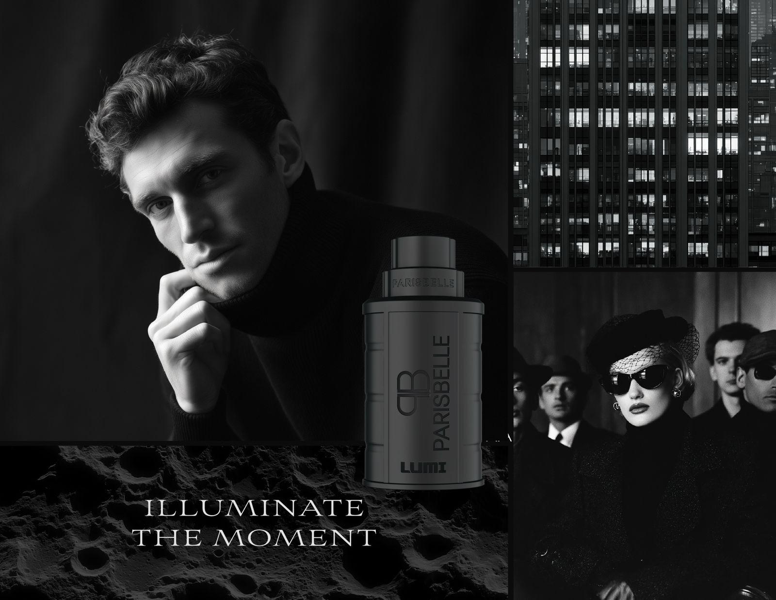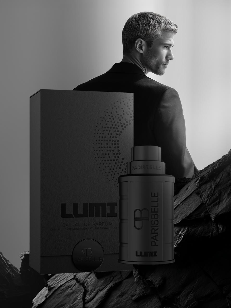 Encased in a sleek black bottle with minimalist design, LUMI is a modern statement of masculine sophistication. Its campaign line, “Illuminate the moment,” reflects the fragrance’s bold clarity and magnetic depth.