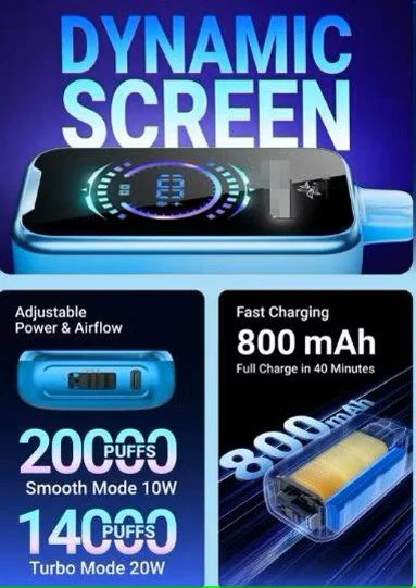 💨 20,000 Puffs Capacity: Designed for endurance and quality