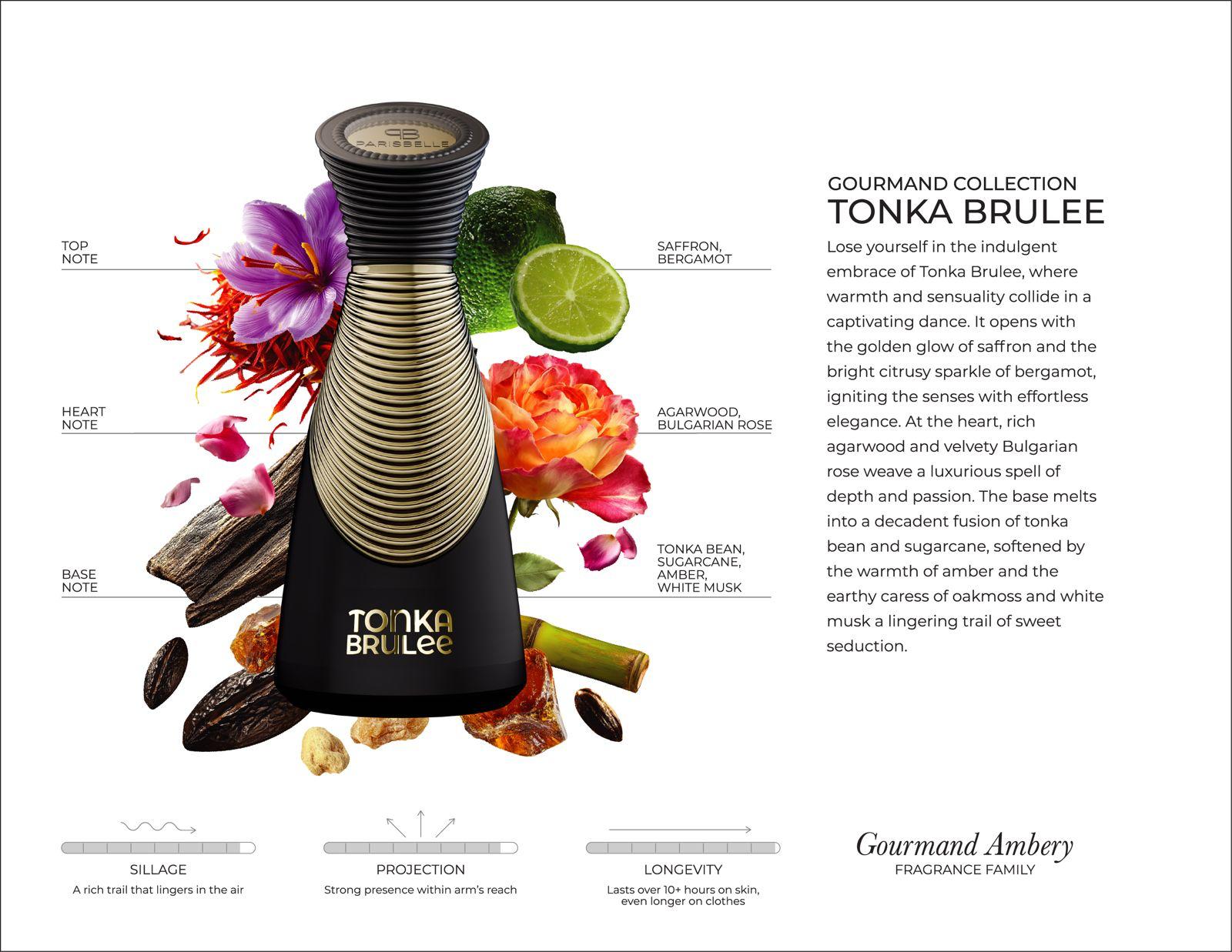 Encased in a sculptural bottle with black and gold accents, Tonka Brulee is a statement of indulgence and sophistication. Perfect for evenings that demand allure and presence.